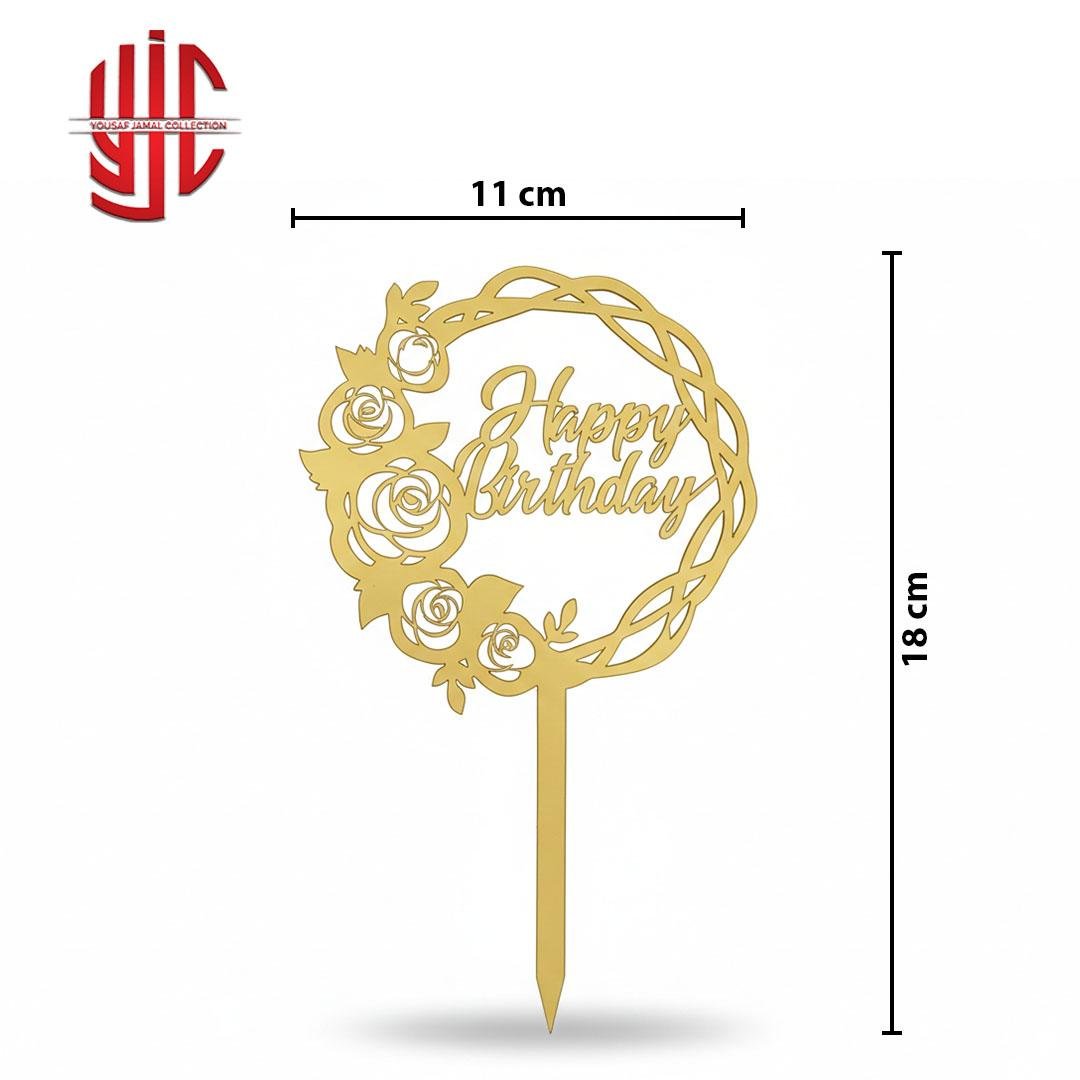 Acrylic Cake Topper Happy Birthday Flowers Round