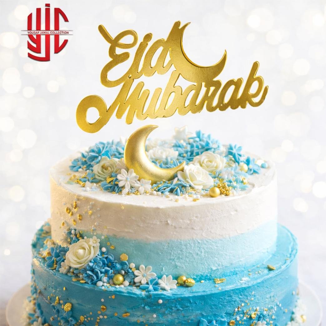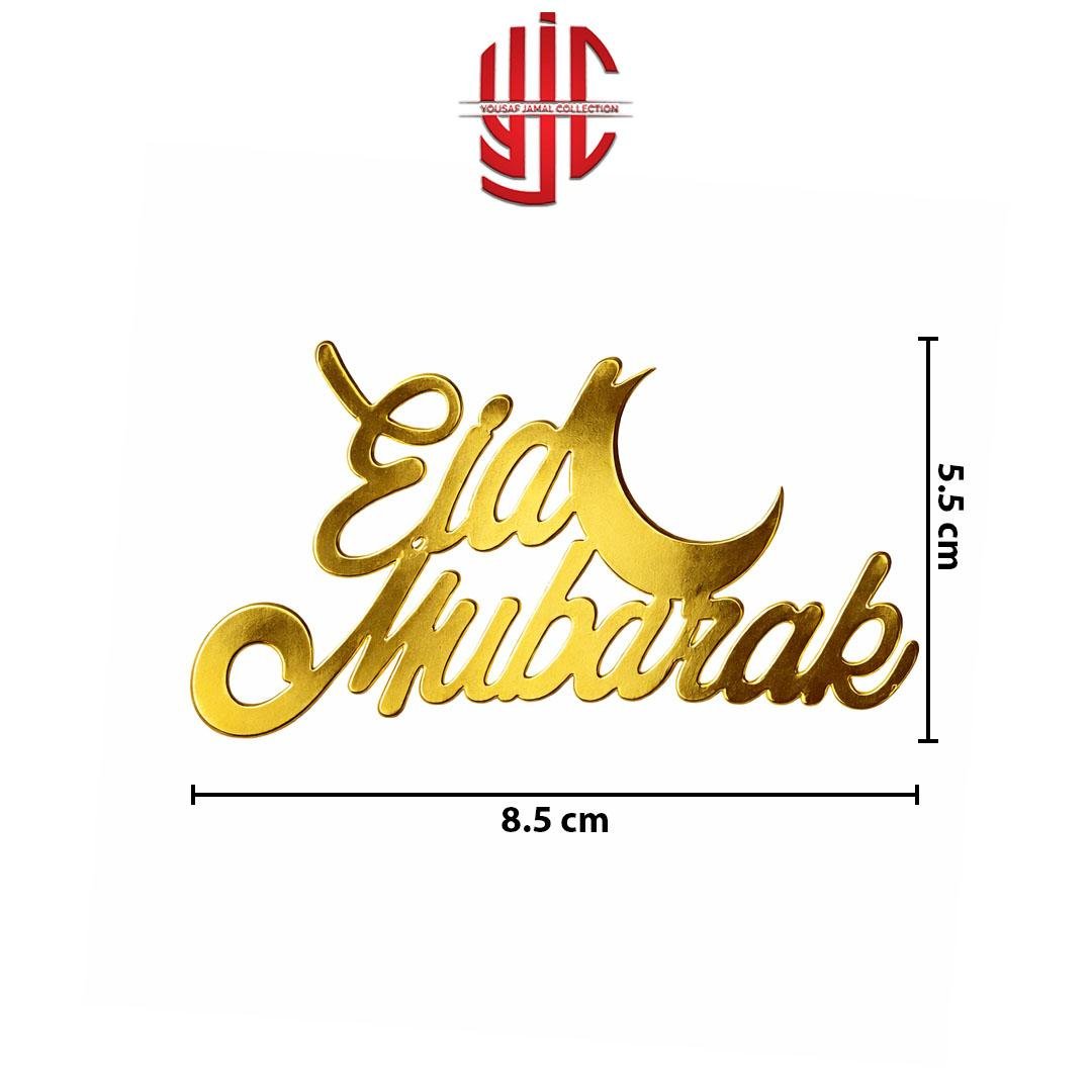Acrylic Eid Mubarak English Cake Topper 5 Pieces Pack Golden