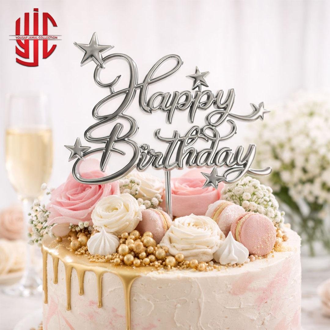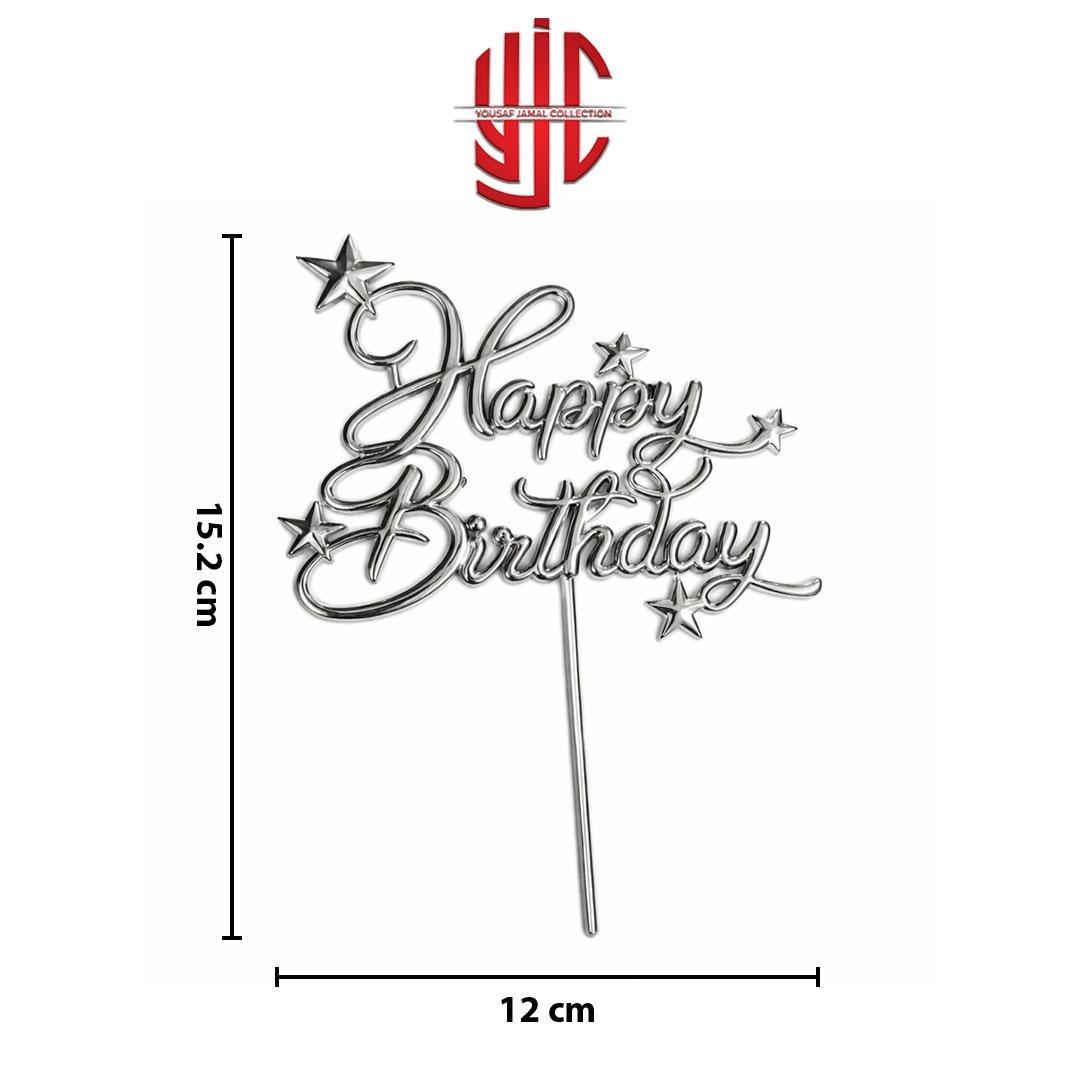 Acrylic Happy Birthday Cake Topper Silver Stars