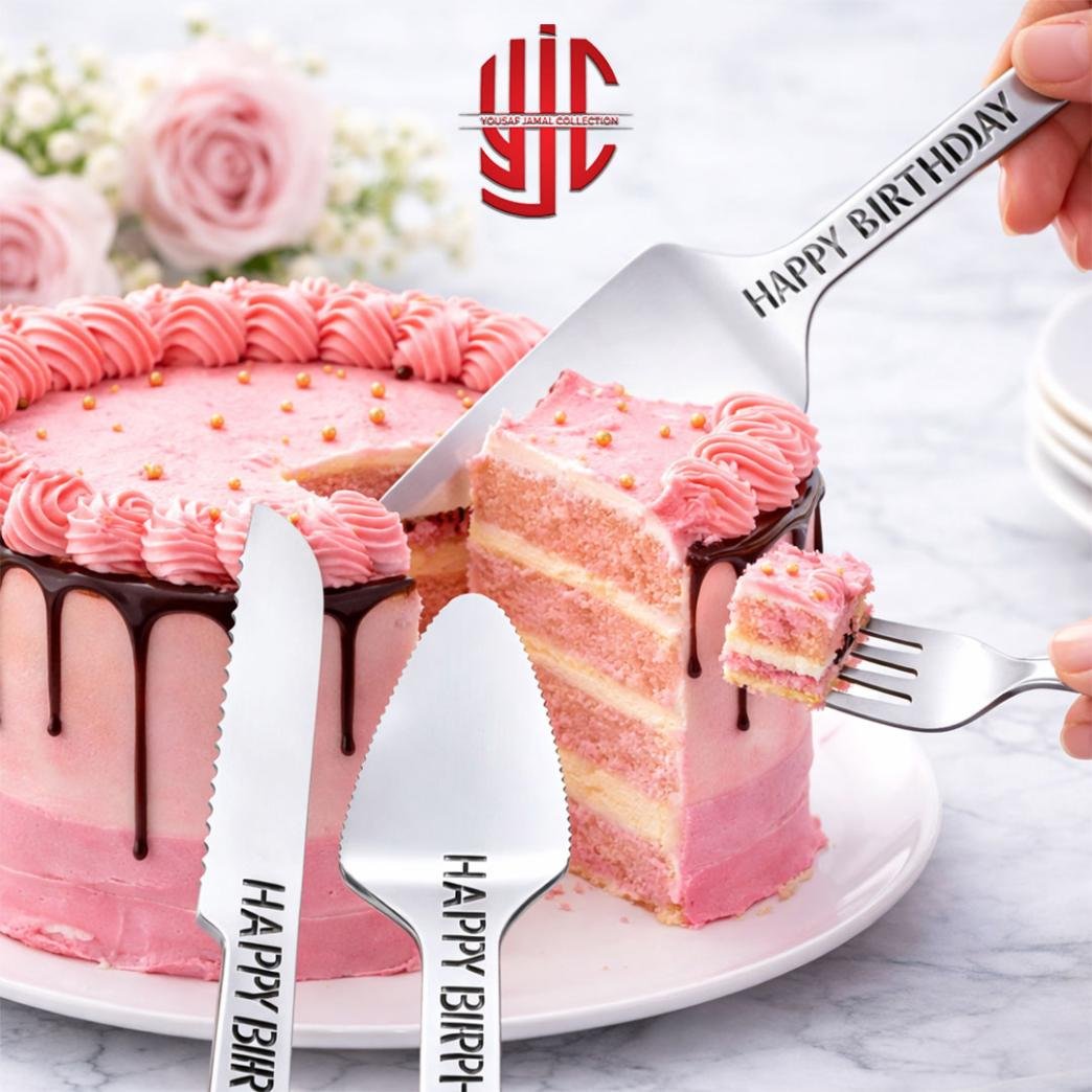 Acrylic Happy Birthday Knife Fork Lifter Set Silver