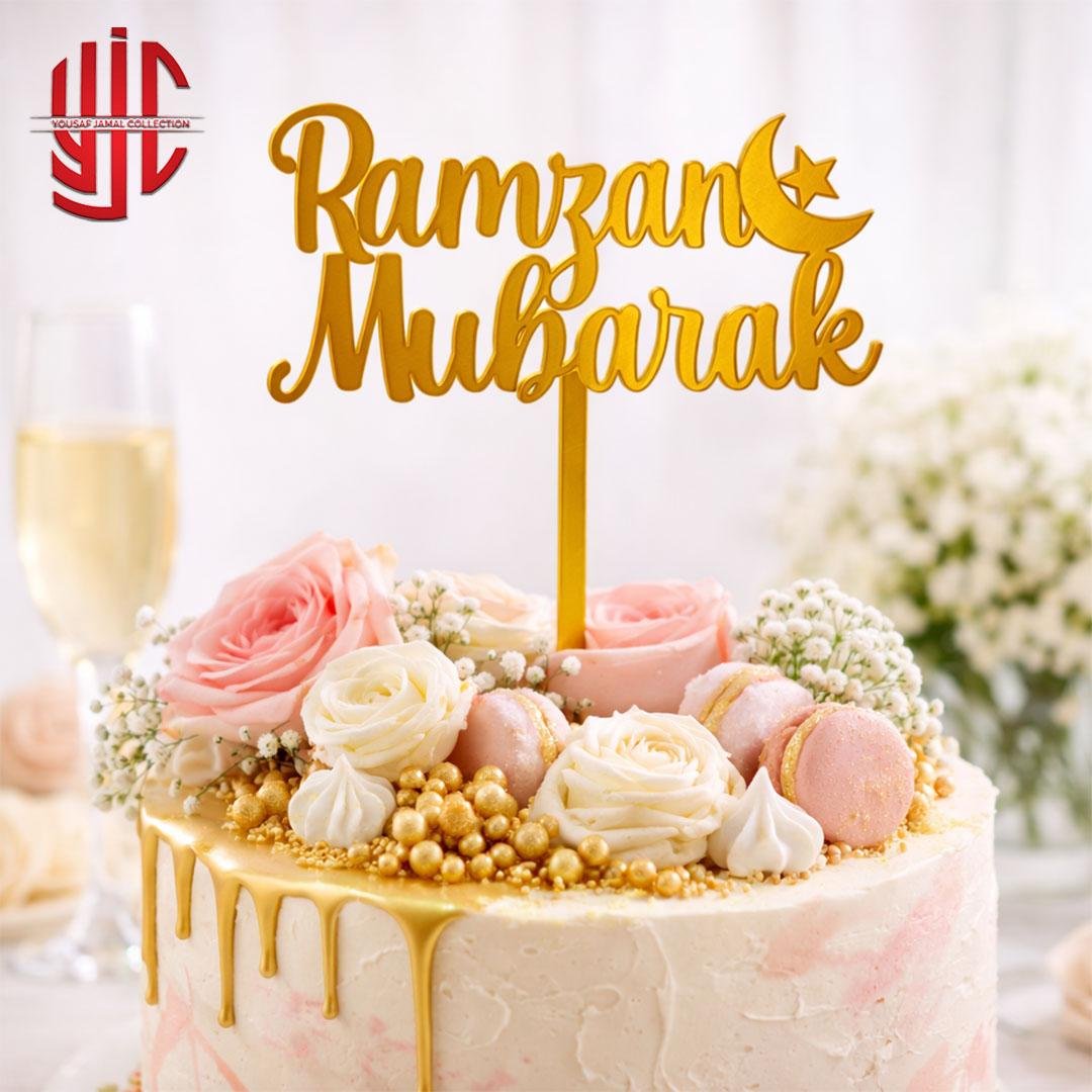 Acrylic Ramazan Mubarak English Cake Topper Golden