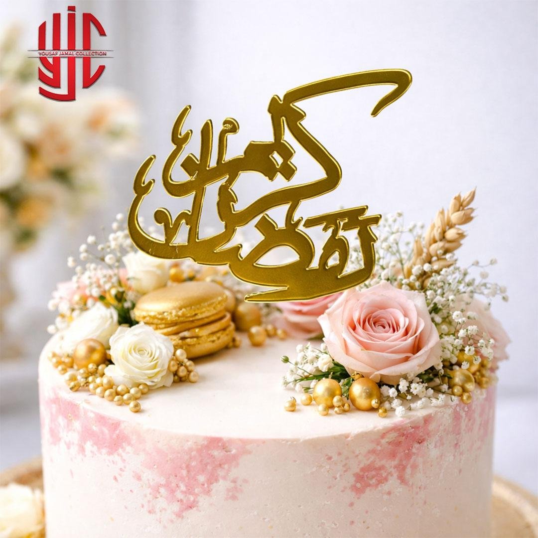 Acrylic Eid Mubarak Urdu Cake Topper 5 Pieces Pack Golden