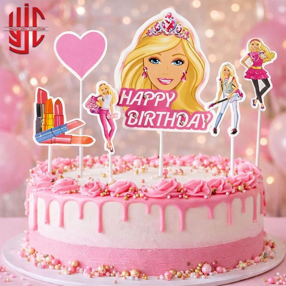 Barbie Theme Paper Cake Topper 6 Pieces Set