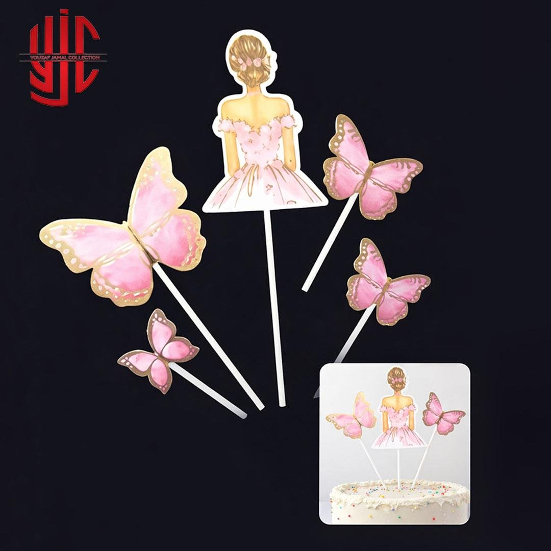 Flower Girl Butterflies Paper Cake Topper 5 Pieces Set