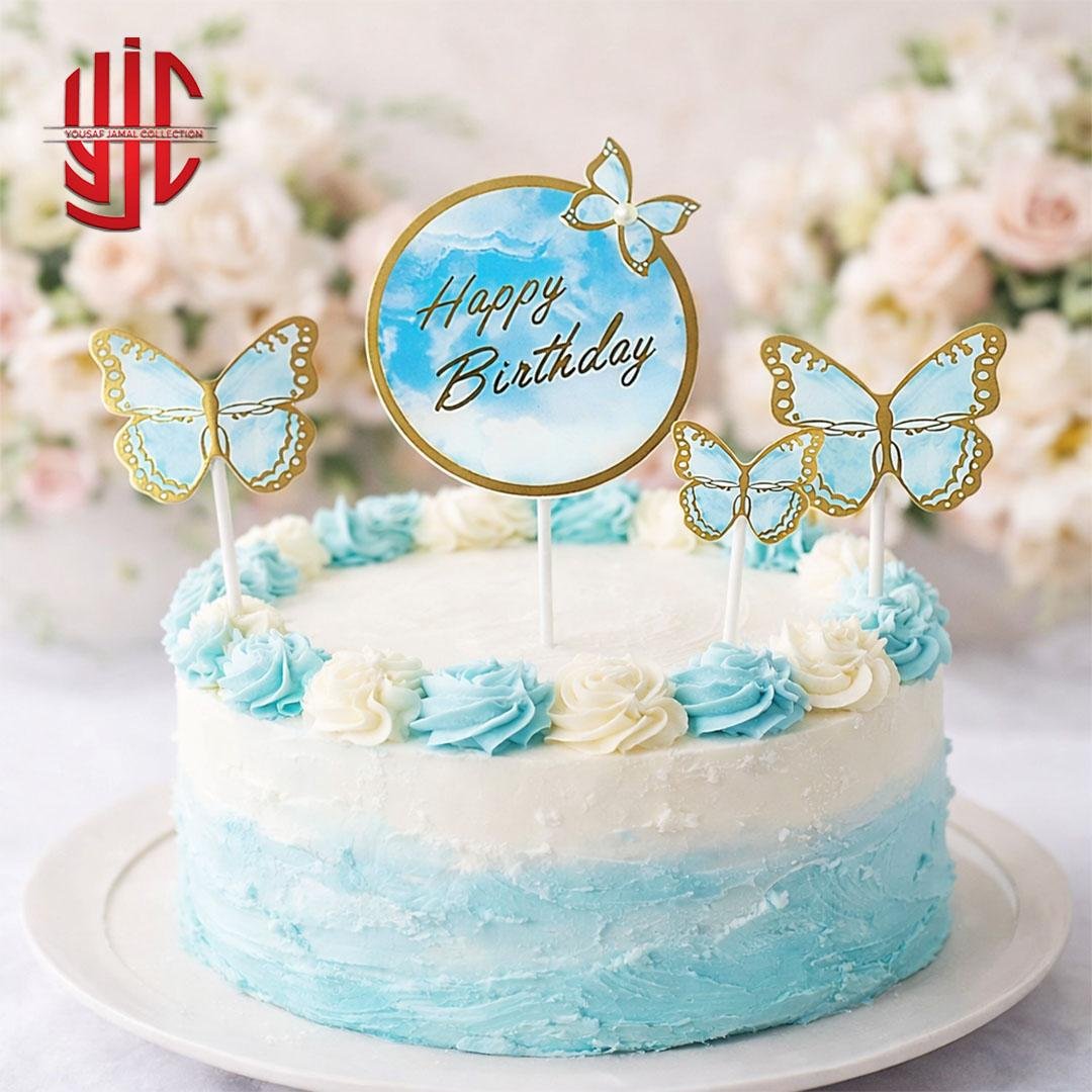 Sky Blue Butterfly Theme Paper Cake Topper 4 Pieces Set