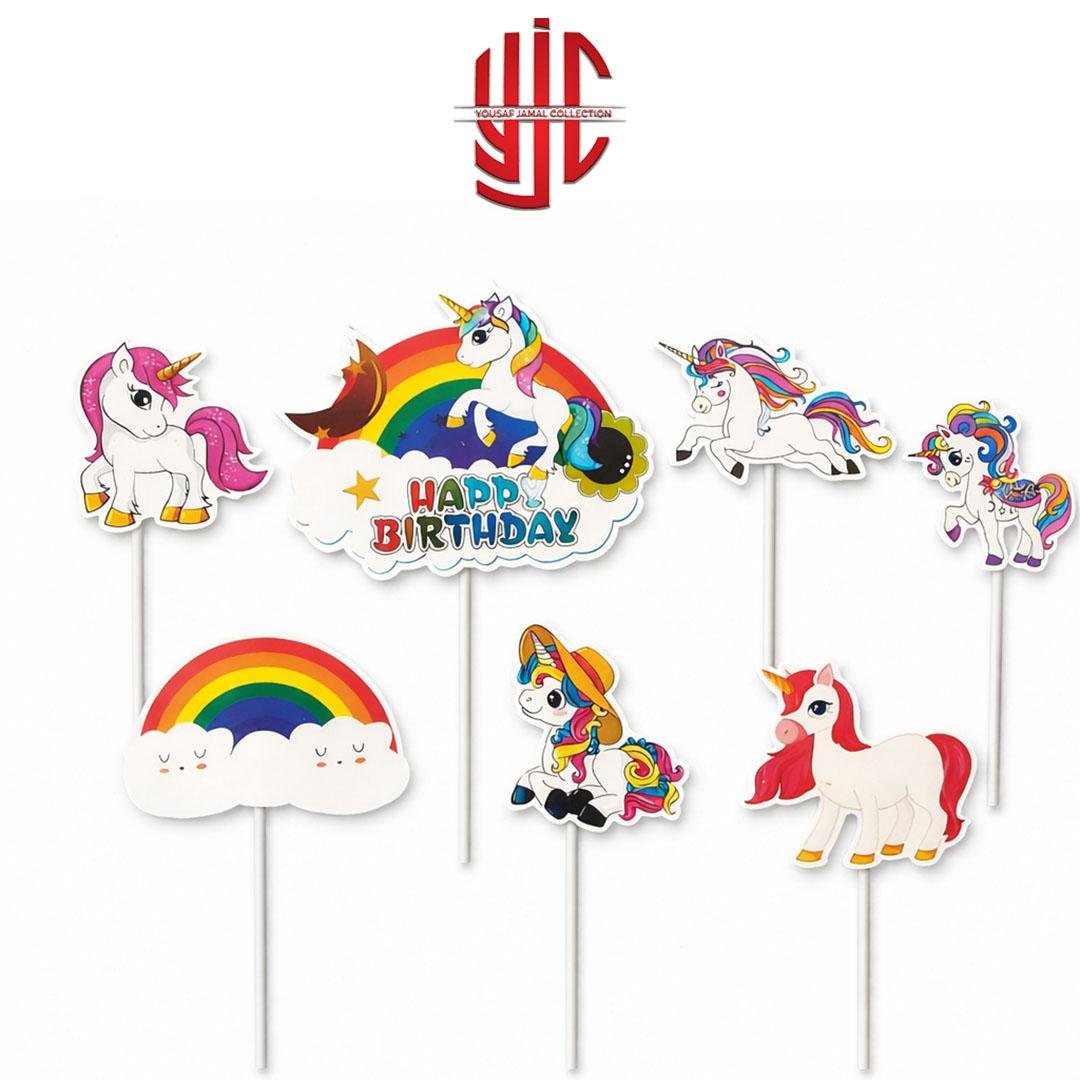Unicorn Theme Paper Cake Topper 7 Pieces Set